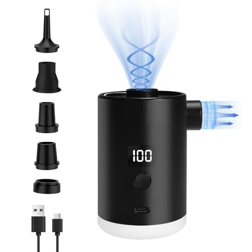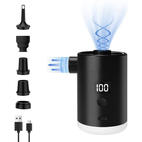 Portable Air Pump for Inflatables: 4000mAh Type-C Rechargeable Battery Ultra-Light Quick Inflate Deflate Electric Air Pumps with Camping Lantern for Pool Floats Air Bed Vacuum Storage Bags (Black)