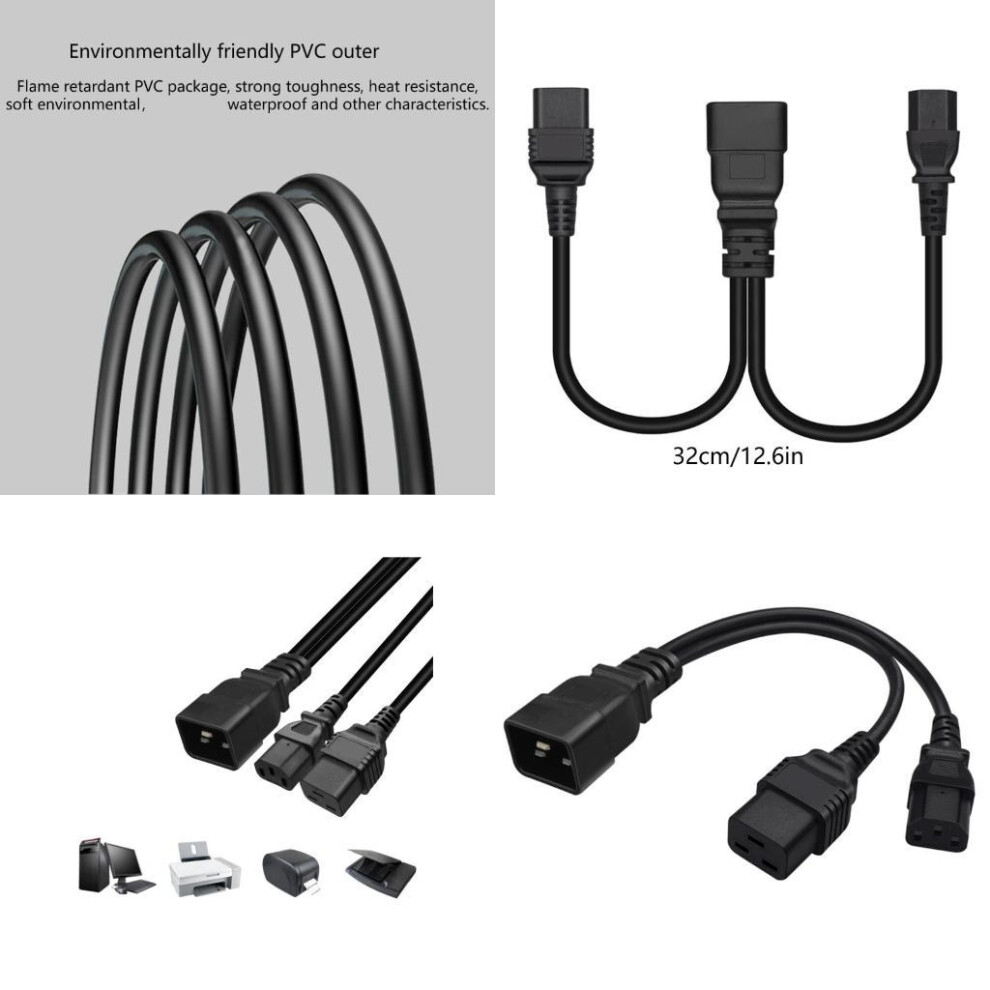 IEC320 C14 to C19 and C13 Power Cord Single IEC 320 C14 to C19 C13 Y Splitter Power Cord 10A 250V 12.6in