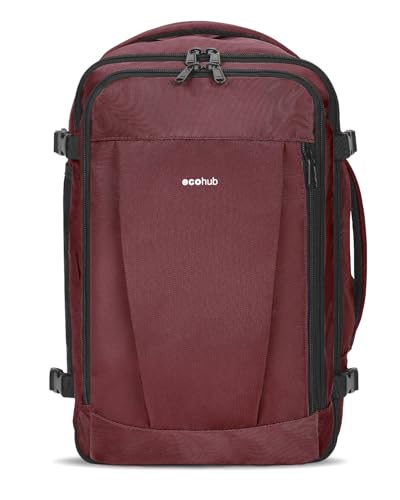 ECOHUB Easyjet Cabin Bag 45x36x20 Underseat Backpack Travel Rucksack 13 Pocket Hand Luggage Waterproof Recycled Carry On Bag for Women & Men 30L Red