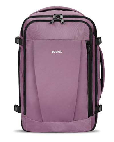 ECOHUB Easyjet Cabin Bag 45x36x20 Underseat Backpack Travel Rucksack 13 Pocket Hand Luggage Waterproof Recycled PET Eco Friendly Carry On Bag for Women & Men 30L Pink