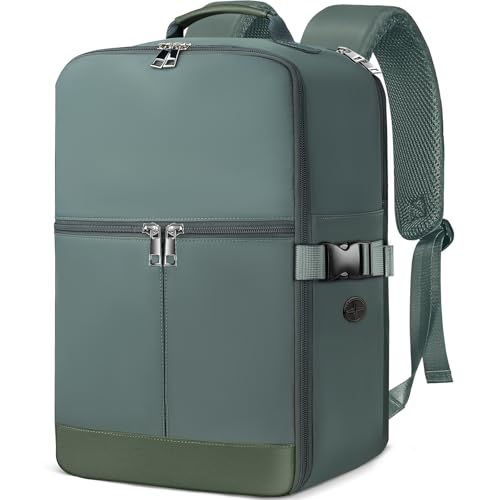 HOMIEE Travel Laptop Backpack 15.6 Inch,45x36x20cm Cabin Bag EasyJet Underseat Carry On Backpack,32L Hand Luggage Rucksack,Water Resistant Casual Daypack with Wet Pocket for Men Women Green