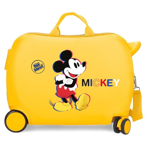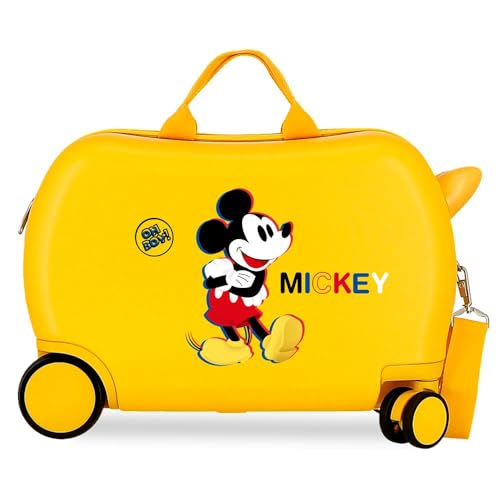 Disney Mickey All Smile Valise Cabine Multicoloured 38 x 55 x 20 cm Rigide ABS Fermeture à Combinaison Latérale 35L 2 kg 4 Doubles Roues Bagage à Main, Ochre, One Size, Children's Suitcase