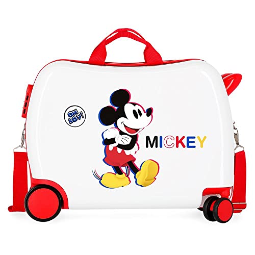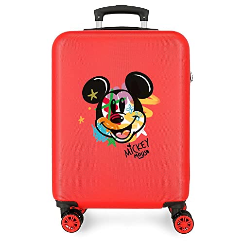 Disney Mickey All Smile Valise Cabine Multicoloured 38 x 55 x 20 cm Rigide ABS Fermeture à Combinaison Latérale 35L 2 kg 4 Doubles Roues Bagage à Main, red, One Size, Cabin Suitcase
