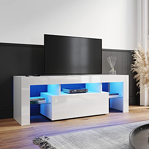 vidaXL TV Cabinet with LED Lights High Gloss White 80x35x40 cm