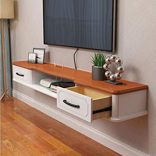 Uvency Wall-Mounted Tv Cabinet Wall Shelf Floating Shelf Set-Top Box Router Photo Toy Organizer Storage Cabinet Tv Background Wall Decoration Shelf Tv Stands with Drawer/Wood Color_110Cm