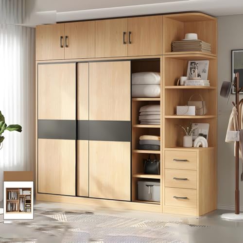CraftThink - Wooden Cabinet with Sliding Doors, Clothes Rail, Soft Close Drawers and Unrecessed Cabinets, Side Cabinet and Top Cabinet, 240 x 49 x 240 cm (L x D x H)
