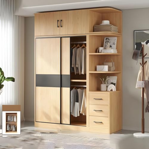 CraftThink - Wooden Cabinet with Sliding Doors, Clothes Rail, Soft Close Drawers and Non Recessed Cabinets, Side Cabinet and Top Cabinet, 140 x 49.7 x 240 cm (W x D x H)