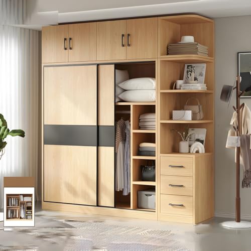 CraftThink Wooden Cabinet with Sliding Doors, Hanging Bar, Soft Close Drawers, Cupboard and Top Cabinet, 200.7 x 49.5 x 240 cm (W x D x H)