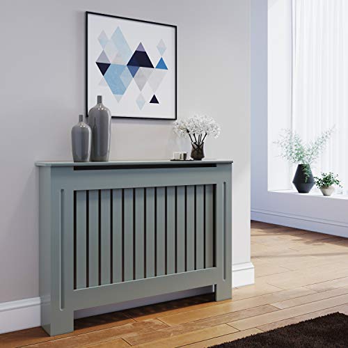 ELEGANT Radiator Cover Grey Painted Modern Design MDF Cabinet, Vertical Slats Radiator Cabinets for Office Hallway Living Room Bedroom, Medium