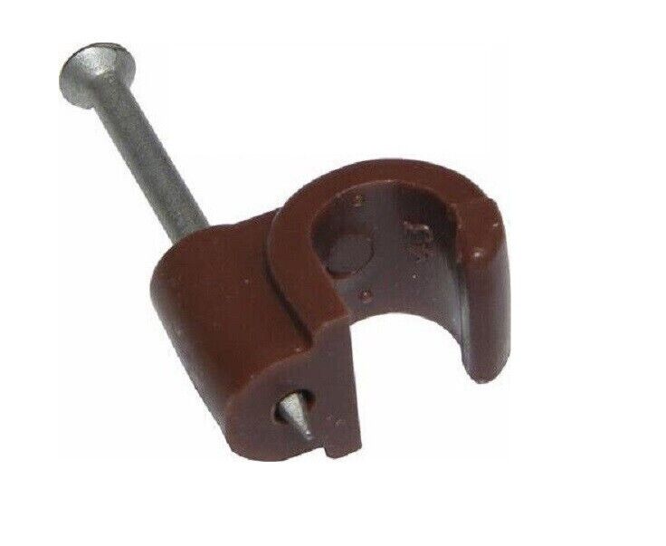 200 x Brown 7mm Round Cable Clips ideal WF100 RG6 Coax Cable Tacks Aerial Nail