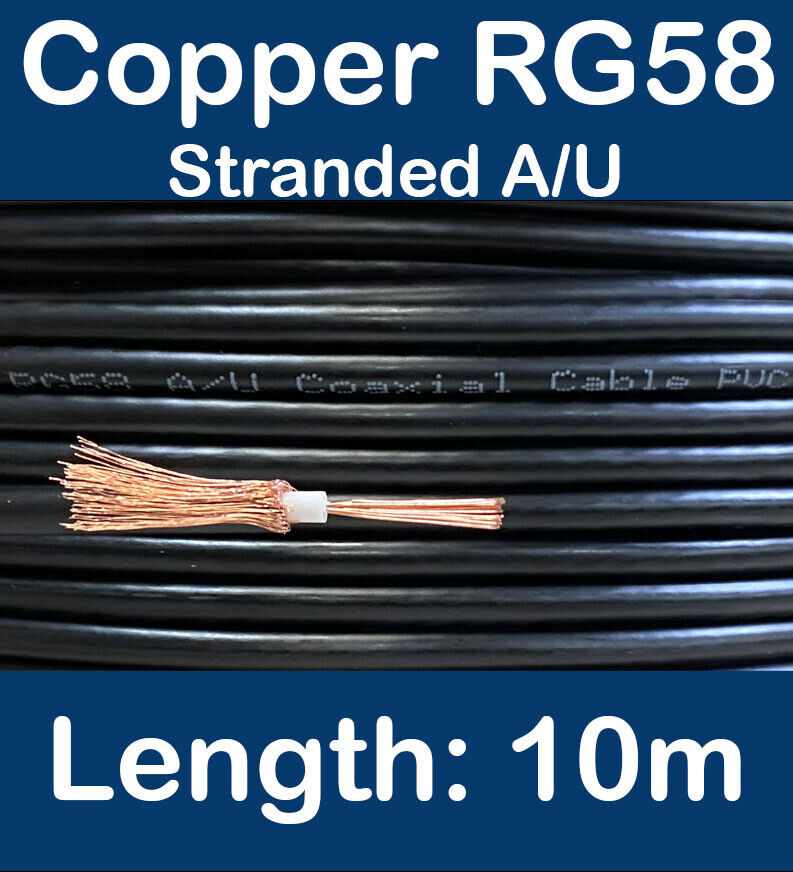 10m Copper Black RG58 A/U 50 Ohm Stranded Coax Coaxial Cable CB Radio Ham Aerial