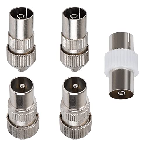 HUISI 5 PCS aerial connectors,2x Female & 2x Male TV Aerial Coaxial Cable Connectors Adaptor,F Connector Adaptor, Coaxial Connector Coax RF Cable Aerial Plug