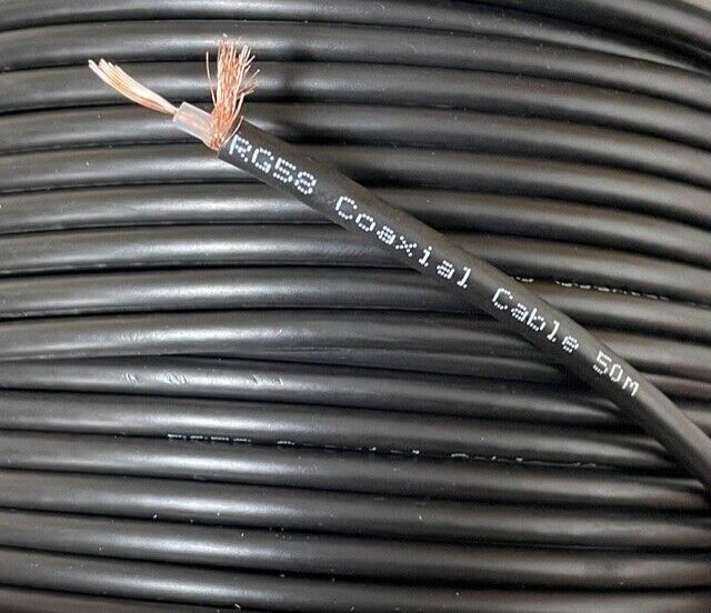 50m Black RG58 50 Ohm Stranded Coax / Coaxial Cable CB Radio Ham Aerial etc