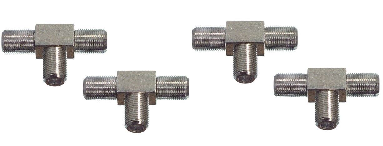 4x F Socket T Splitter Adaptor Cable TV Aerial Freeview Virgin Media Dreambox