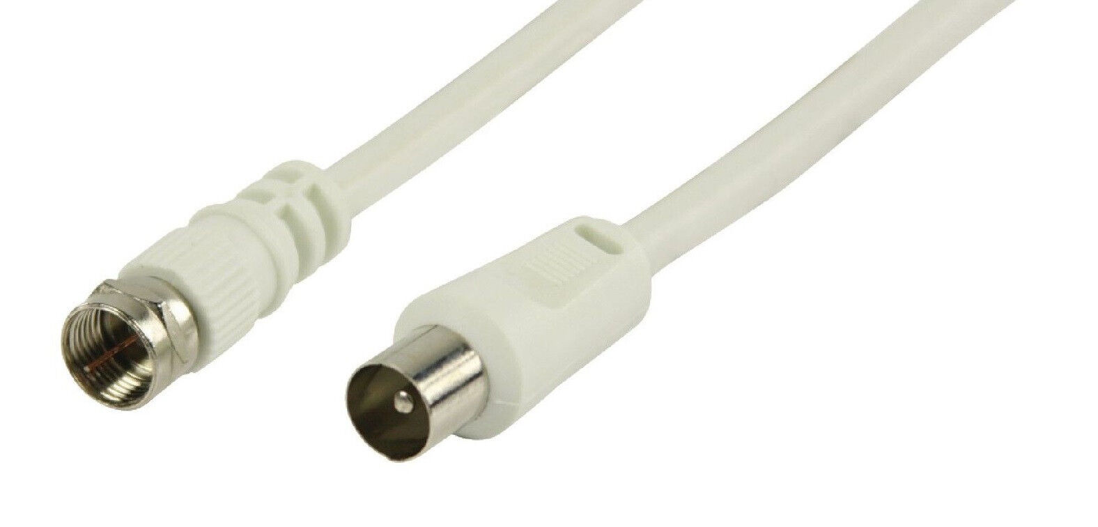 3m White F Plug Male to Coax Plug Male Cable / Lead for TV Aerial Satellite etc