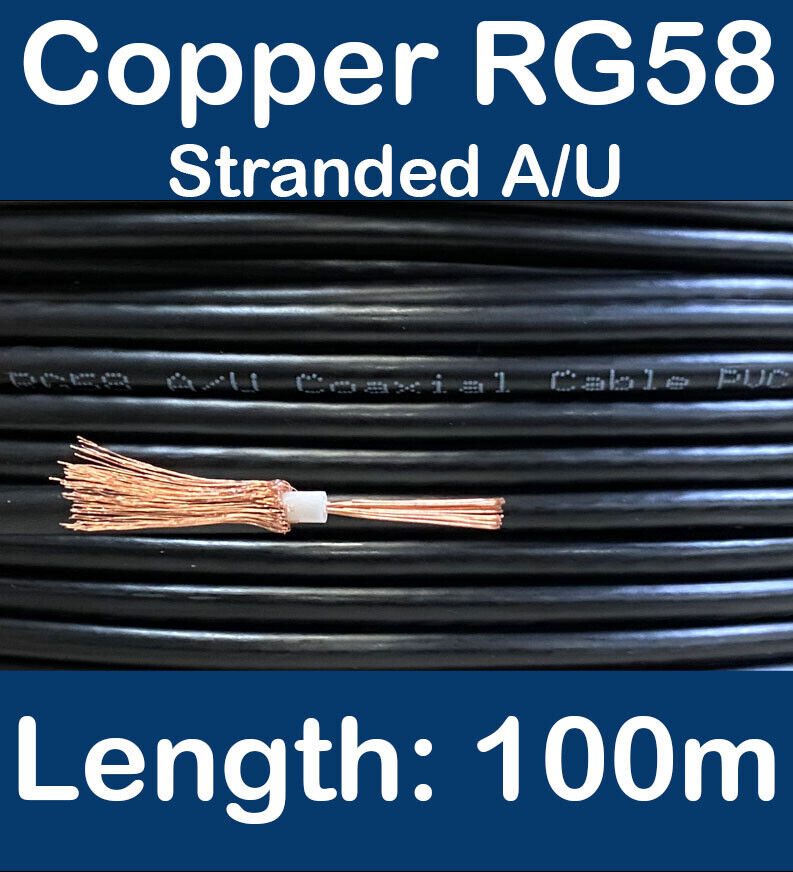 100m Copper Black RG58 AU 50 Ohm Stranded Coax Coaxial Cable CB Radio Ham Aerial