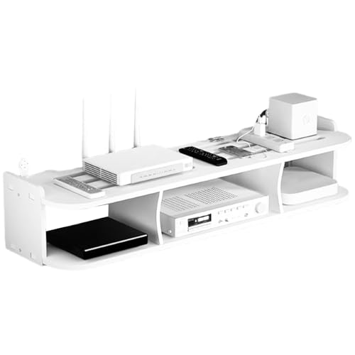 CLISPEED Double Wall Mounted Storage Rack White No-drilling Router Shelf with Strong Bearing Capacity for Cds Wifi Devices Cable Management Space-saving Wall Display Organizer