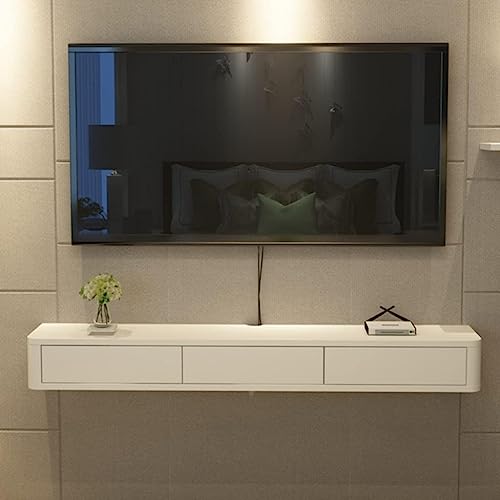 DRFGHK Floating TV Stand with Hidden Cable Management Hole Wall Mounted Unit Set Top Box Shelf Small Media Console for Bedroom Storage Shelves 110cm Cabinet