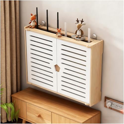 Vnook Router Cabinet, WiFi Router Storage Box, Cable Management Box Wall Mount, Desktop Storage Box for Cables(60x12x20cm)