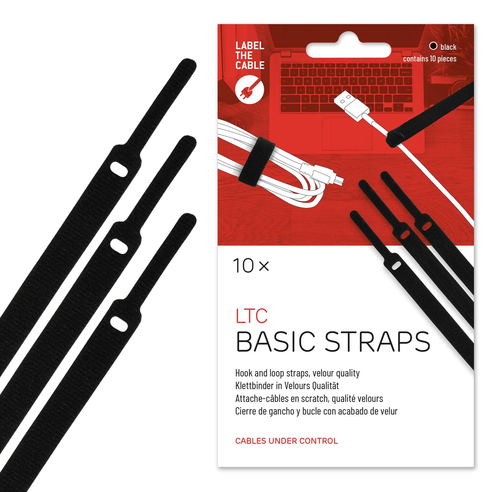 LABEL THE CABLE Self-Adhesive Hook and Loop Cable Holders for Perfect Cable Management - Cable Organisers for Walls & Desks - LTC WALL STRAPS - Pack of 10 - Black - LTC 3110