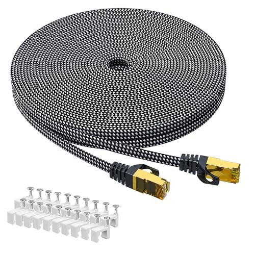 ARISKEEN Cat 8 Ethernet Cable 30M, Cat8 Braided Flat High-Speed Gigabit Rj45 STP Shielded Internet Network Lan Patch Cable Cord for Modem Router Computer TV PC