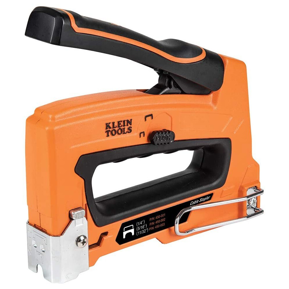 Klein Tools 450-100 Heavy Duty Stapler for Voice, Data, Video and Nonmetallic Sheathed (Romex) Cable Fits 1/4-, 5/16-, and 19/32-Inch Staples