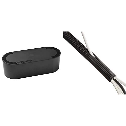 D-Line Cable Tidy Box, Hide and Conceal Extension Blocks and Electrical Cables - Small, Black & Cable Tidy Tube | Cable Management Sleeve – Black