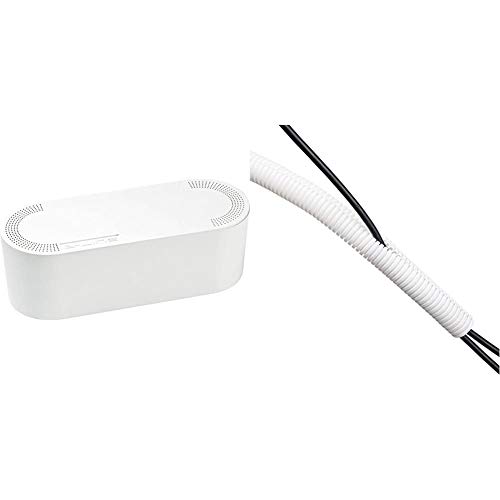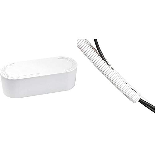 D-Line Cable Tidy Box, Hide and Conceal Extension Blocks and Electrical Cables - Small, White & Cable Tidy Tube | Cable Management Sleeve | 1.1 meter length x 25mm outer diameter – White