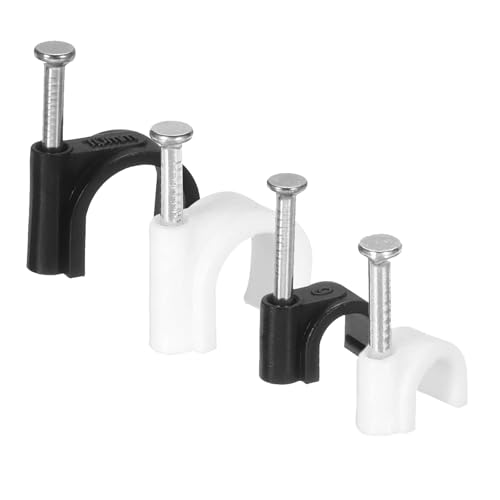 AMSGANK 400pcs Round Cable Nail Clips, 2 Size 6mm 10mm White and Black Round Cable Wall Clips Wire Tidy Clip Pins Cables Tacks for Organizing Ethernet, Electrical Cables, Wires