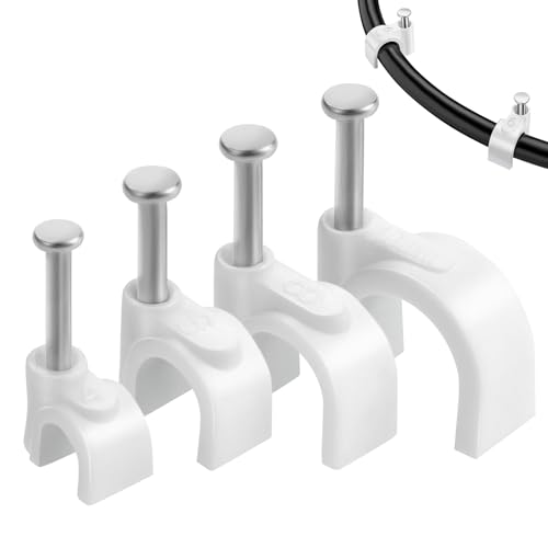 Roxanex 400PCS 4 Sizes Cable Clips White Cable Nail Clips, Strong Electrical Cable Wall Clips Wire Tidy Clips 4mm 6mm 8mm 10mm for Ethernet Cable Telephone Line TV USB Cable