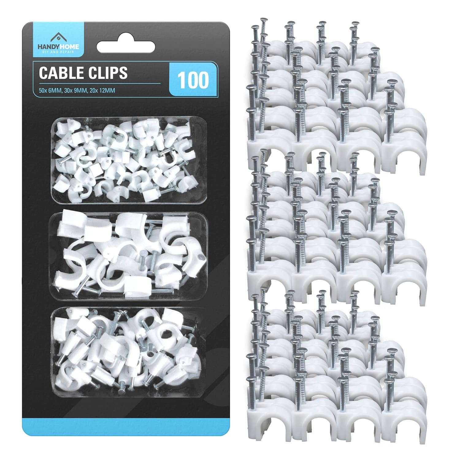 100Pk White Cable Clips – Durable Wall Clips for Wire Management – Strong Pins f