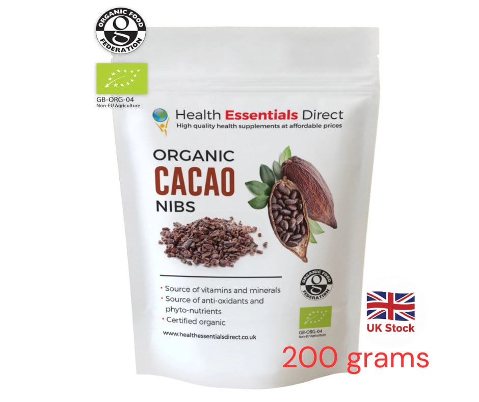 200g Organic Cacao Nibs - Gluten-Free, , Perfect for Baking & Snacking