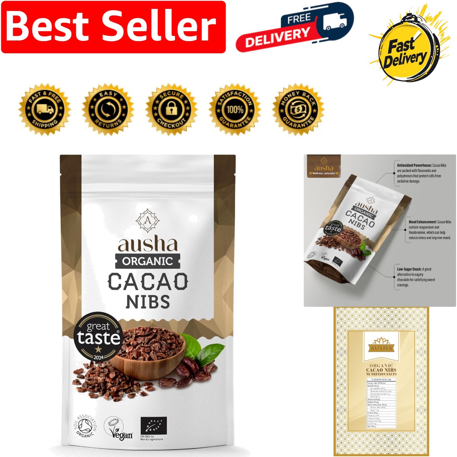 Ausha Organic Raw Cacao Nibs 200g - 1* GREAT TASTE AWARD 2024 - UK Certified Organic by Soil Association