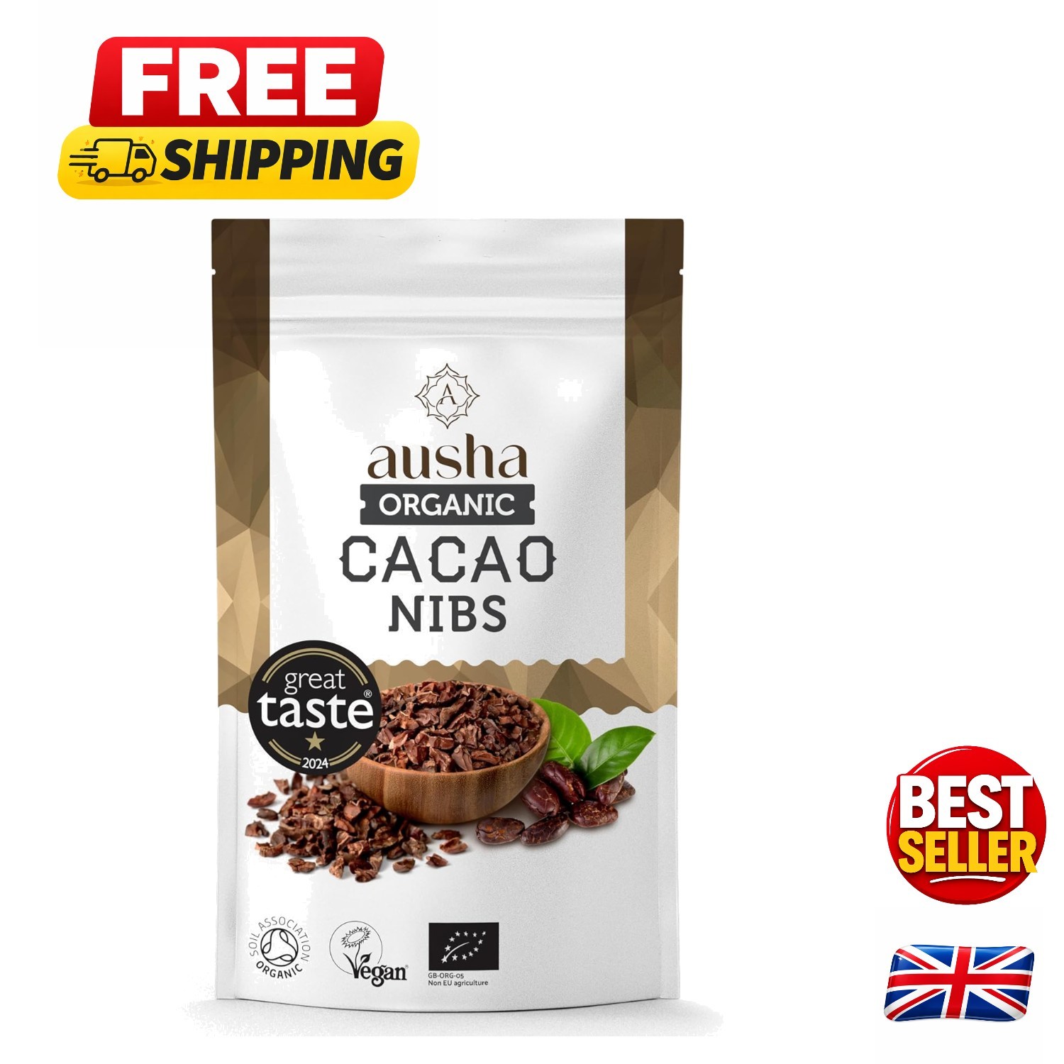 Ausha Organic Raw Cacao Nibs 200g - 1* GREAT TASTE AWARD 2024 - UK Certified Or