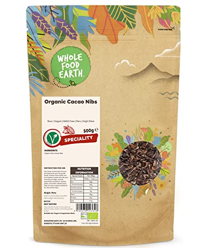 Wholefood Earth Organic Cacao Nibs 500g Raw | Vegan | GMO Free | Peru | High Fibre | Certified Organic