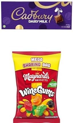 Cadbury x Maynards Bassetts Giant Gifts Bulk Bundle, Perfect for Gifting, Includes 1 x Cadbury Dairy Milk Large Gift Bar 850 g 1x Wine Gums Mega Sharing Bag 1kg