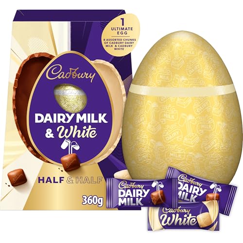 Cadbury Dairy Milk Ultimate Half & Half Easter Egg, Includes 1 Large Milk & White Chocolate Egg and 8 Individually Wrapped Assorted Chunks of Chocolate, Gift for Easter, 360 g (Pack of 1)