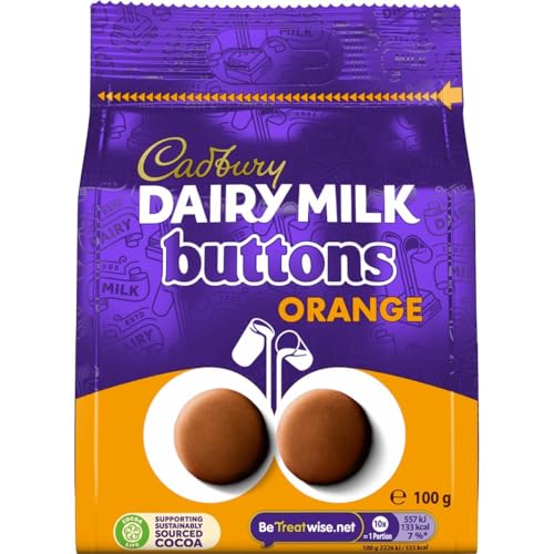 Cadbury Dairy Milk Chocolate Orange Flavour Giant Buttons, Sharing Bag, Bite Size Treats, 100 g Bag (Pack of 1)