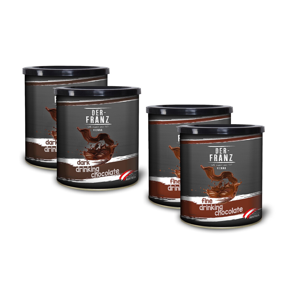 Der-Franz Hot Chocolate Mix Bundle - 2x Fine Drinking Chocolate, 2x Dark Drinking Chocolate, 4x 500g