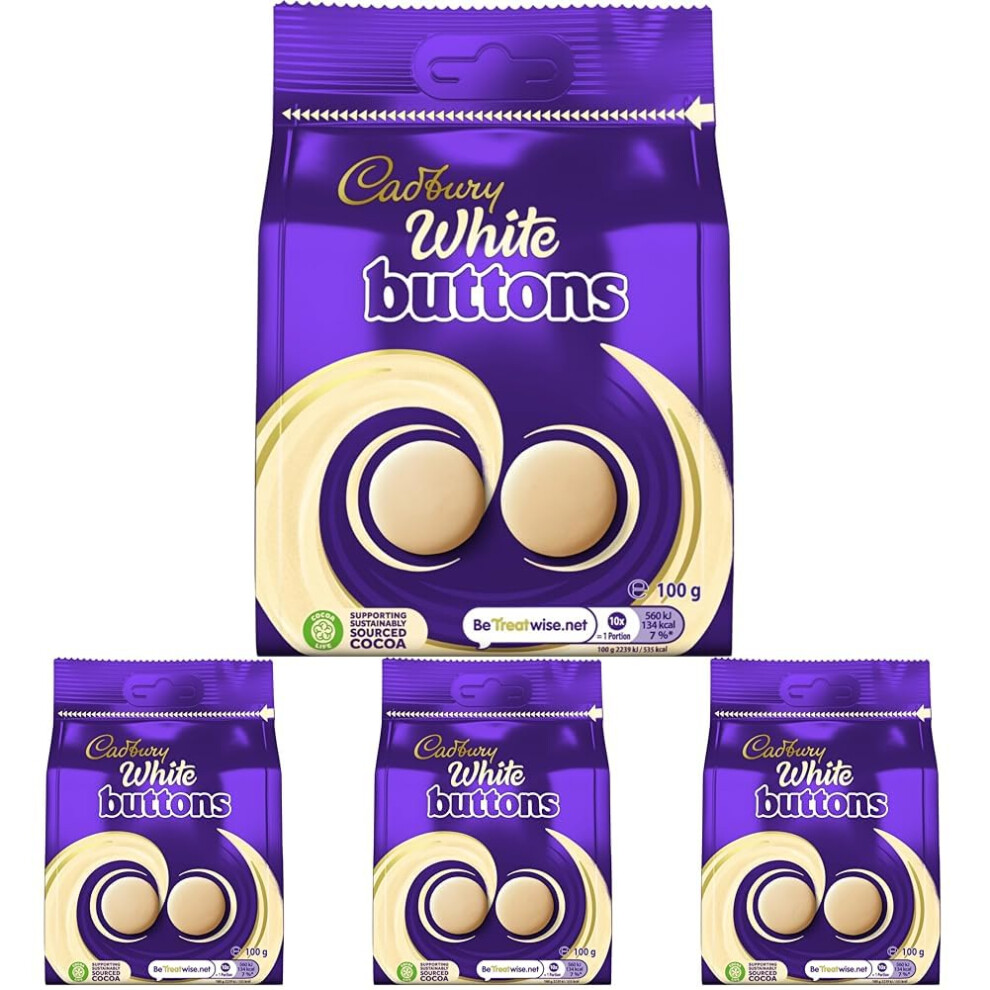 Cadbury White Chocolate Giant Buttons, Sharing Bag, Bite Size Treats, 100 g (Pack of 4)
