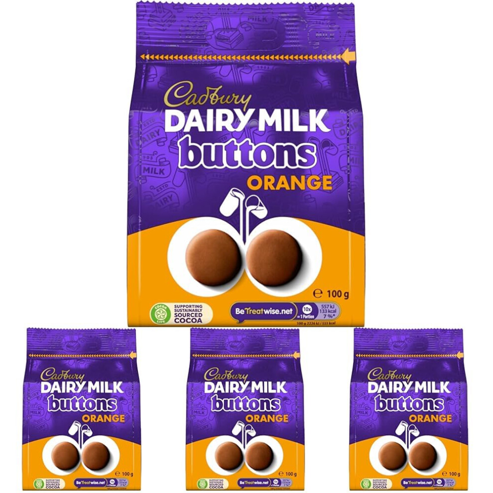 Cadbury Dairy Milk Chocolate Orange Flavour Giant Buttons, Sharing Bag, Bite Size Treats, 100 g Bag (Pack of 4)