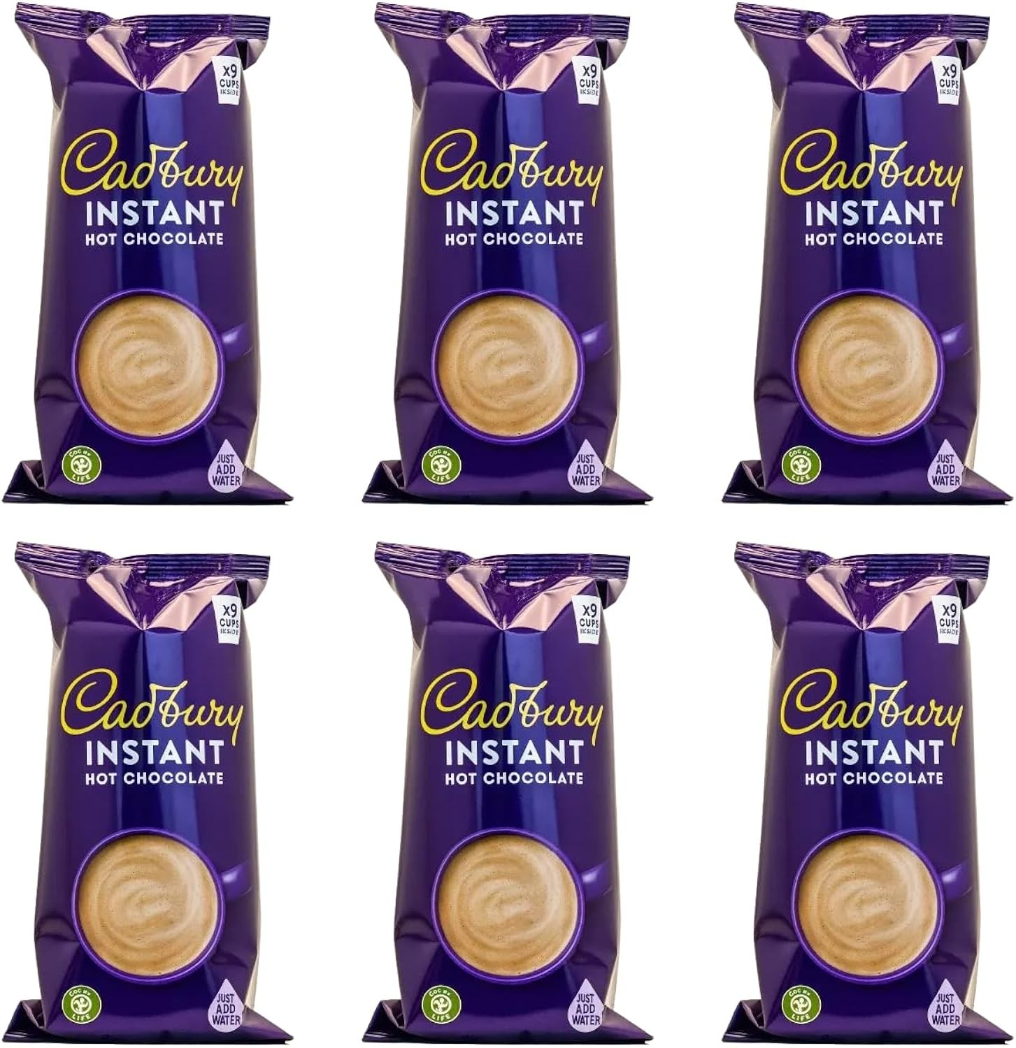 Cadbury Instant Hot Chocolate Cups Add Water 9 Pack of 6 Sleeves 54 Total