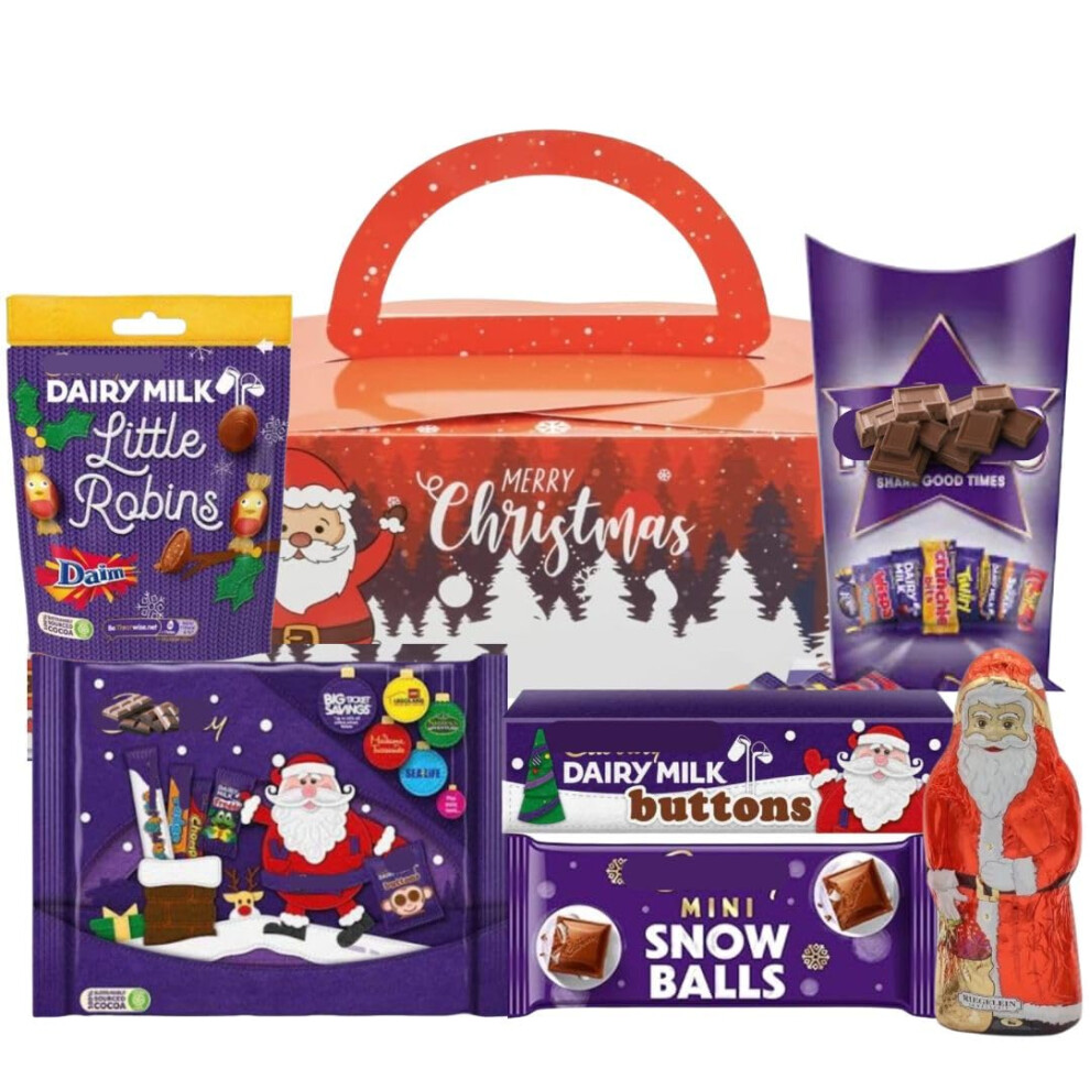 Cadburys Christmas Chocolate Gift Box - Bulk Sharing for Kids & Adults - Includes Heroes Little Robins Selection Box Snow Balls- Family Sharing Hampe