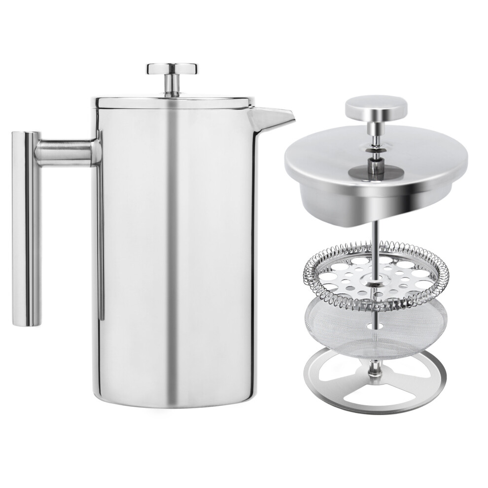 KICHLY Cafetiere 8 Cup Stainless Steel French Press Coffee Maker, Coffee Press with 3 Level Filtration System