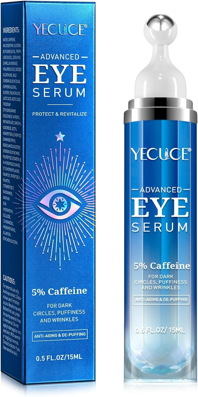 Eye Serum with 5% Caffeine, Eye Roller for Dark Circles and Puffiness, Caffeine