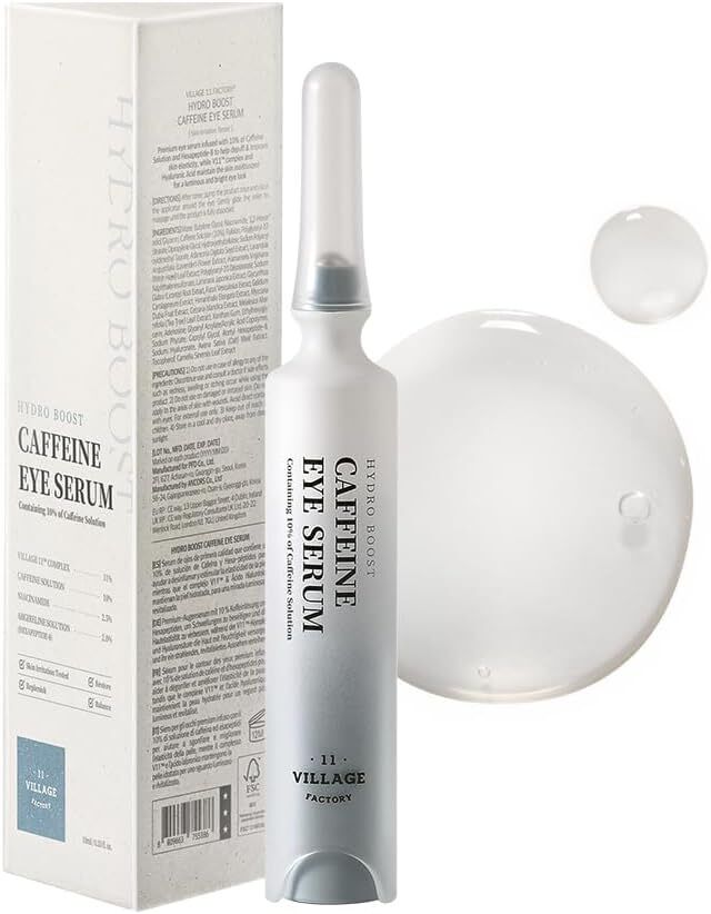 [VILLAGE 11 FACTORY] HYDRO BOOST CAFFEINE EYE SERUM (10ml) Korean Skincare - 10% Caffeine - Hexapeptide-8 & Niacinamide - Anti-Aging & Dark Circle Treatment