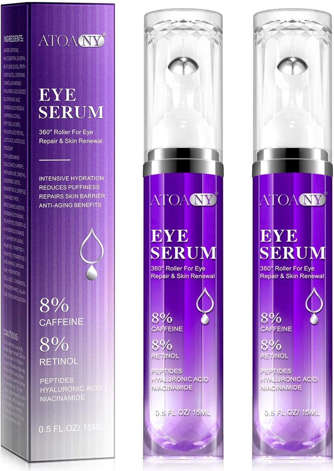 2 Packs Eye Serum for Dark Circles and Puffiness with 8% Caffeine 8% Retinol Hy