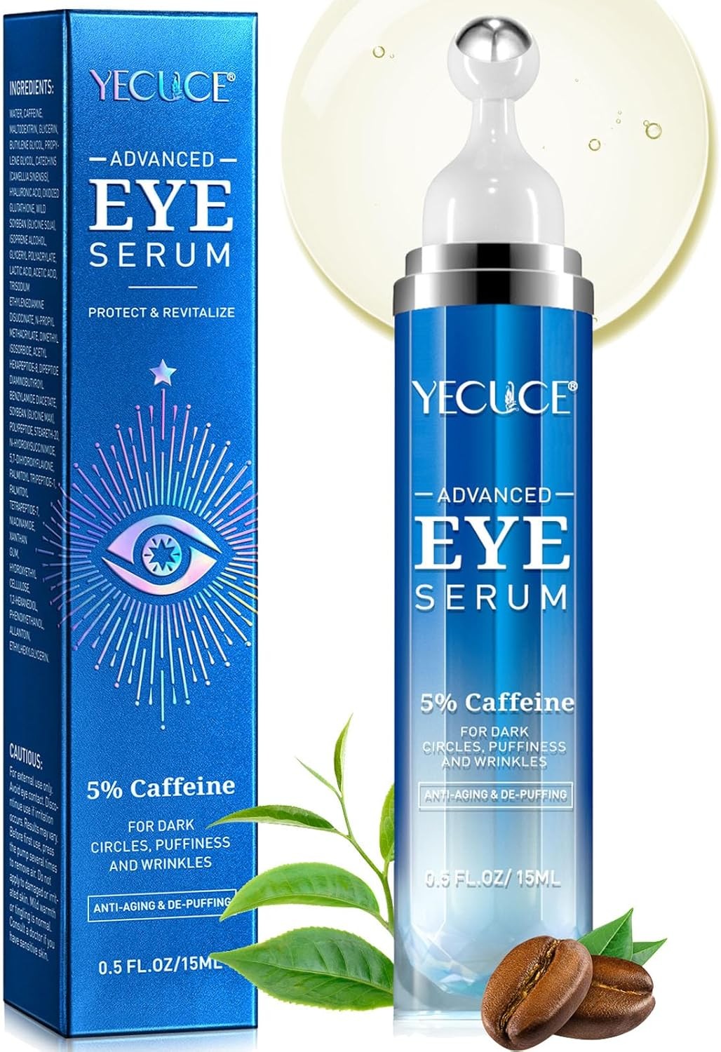 Eye Serum for Dark Circles and Puffiness, under Eye Serum with 5% Caffeine anti