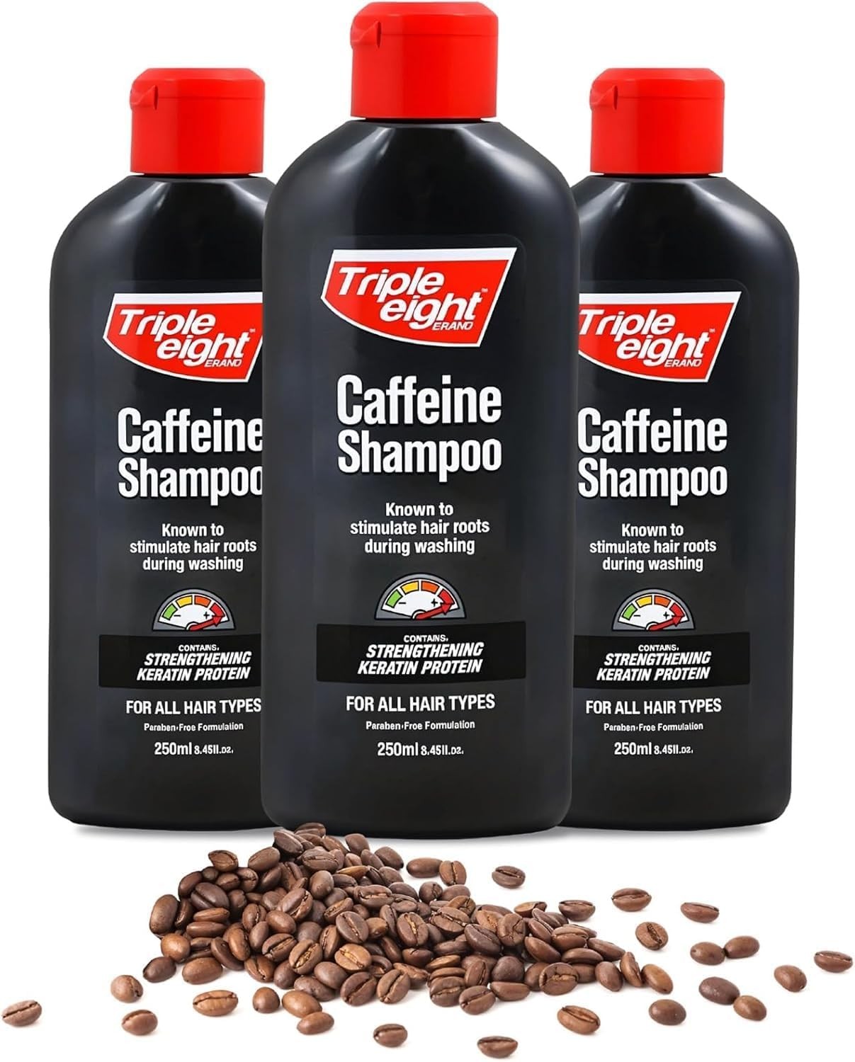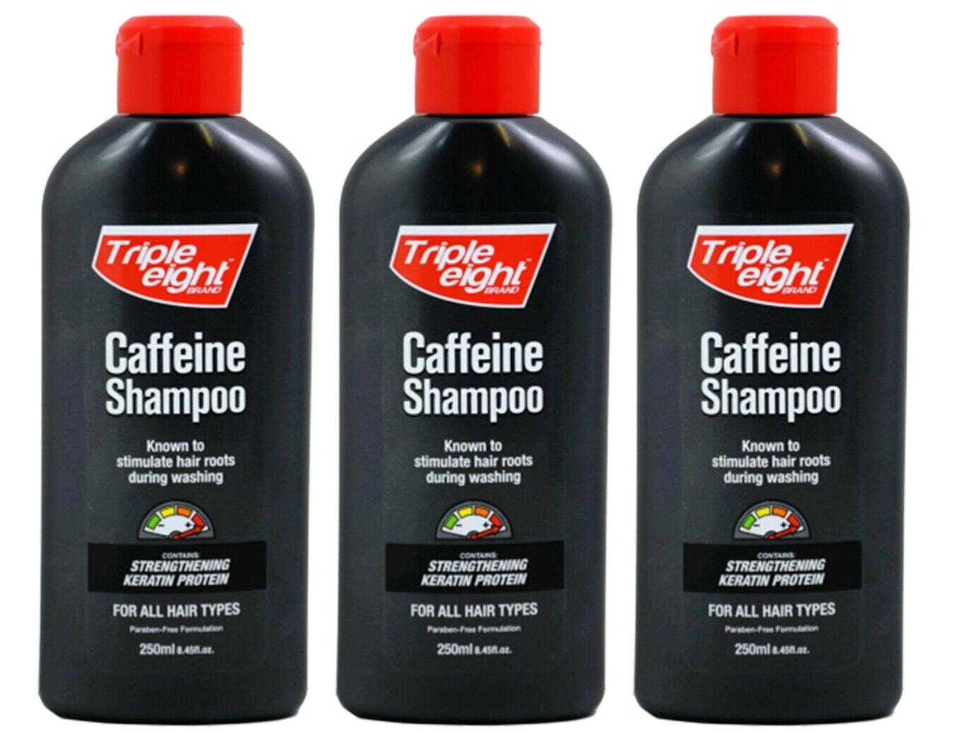 TRIPLE EIGHT CAFFEINE SHAMPOO FOR ALL HAIR TYPES PARABEN FREE 250ML / PACK OF 3