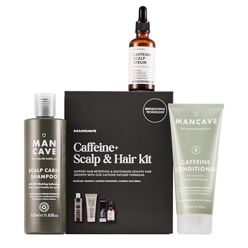 ManCave Caffeine+ Scalp & Hair Kit with 3 Haircare Essentials for Healthier Hair and Scalp, Scalp Care Shampoo, Caffeine Conditioner and Caffeine+ Scalp Serum, Sulphate Free, Vegan, Cruelty Free